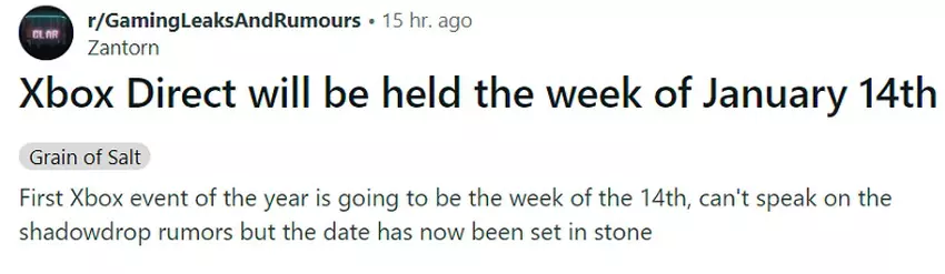 Na forum Reddit insider o pseudonimie Zantorn twierdzi, że Xbox Developer Direct odbędzie się już w przyszłym tygodniu. Według jego informacji, wydarzenie będzie miało miejsce 14 stycznia.