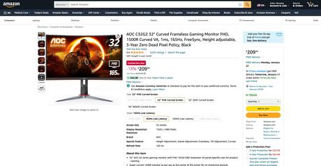 AOC C32G2 na Amazon: 32-calowy zakrzywiony monitor 165 Hz z rabatem w wysokości 30 USD