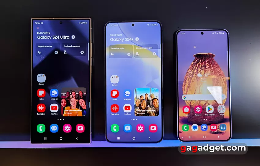 Pod względem głównych cech aparaty nowych Samsungów Galaxy S24 i Galaxy S24+ nie różnią się od poprzedniej linii. Tak więc z tyłu znajdują się trzy moduły. Główny 50-megapikselowy aparat z przysłoną f/1.8, wielokierunkowym PDAF i stabilizacją optyczną, 10-megapikselowy teleobiektyw z przysłoną f/2.4, PDAF, stabilizacją optyczną i 3-krotnym zoomem oraz 12-megapikselowy ultraszerokokątny aparat z przysłoną f/2.2, kątem widzenia 120˚, ponownie bez autofokusa. Przedni aparat to 12 MP, f/2.2, 25 mm z autofokusem z detekcją fazy. Zobaczymy, jak dobrze strzelają podczas recenzji, zwłaszcza biorąc pod uwagę zastosowanie procesora Exynos 2400.