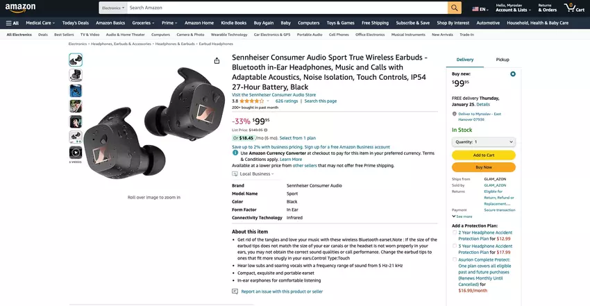 Mowa o modelu Sennheiser Sport True Wireless. Model jest teraz dostępny na Amazonie w cenie $99.95 $142.10, -30%. Dostępny jest tylko jeden kolor - czarny.