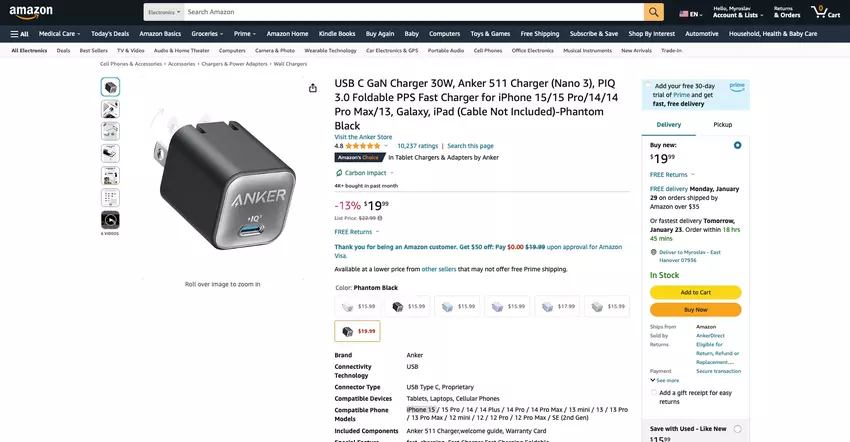 20% zniżki: kompaktowa ładowarka GaN Anker 511 Nano III o mocy 30 W za 15,99 USD