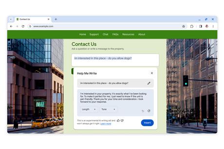 Google ogłosił integrację funkcji AI z przeglądarką Chrome - asystenta pisania, organizatora kart i generatora motywów projektowych.