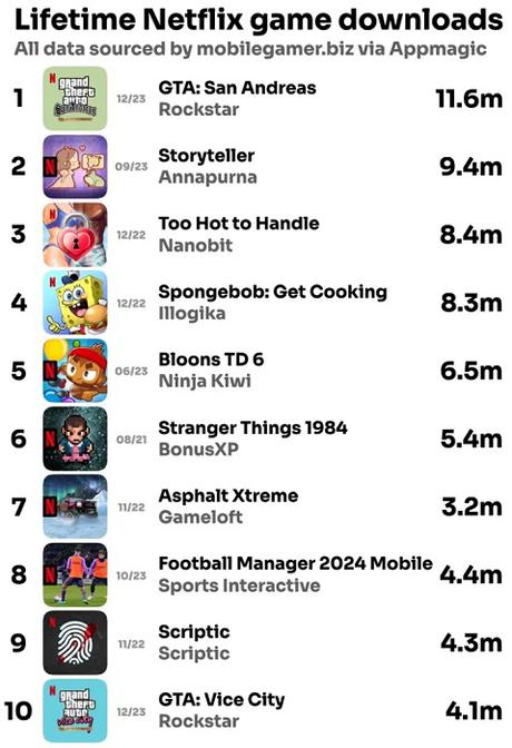W raporcie finansowym za 2023 r. Netflix poinformował, że dzięki wydaniu zaktualizowanych wersji kultowych kryminalnych filmów akcji użytkownicy Androida i iOS stali się znacznie bardziej aktywni w Netflix Games. Tak więc, podczas gdy w listopadzie 2023 r. miesięczna liczba pobrań gier na Netflix wynosiła około 10 milionów, w grudniu 2023 r. wzrosła do 28 milionów!
