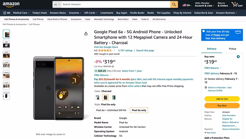 Google Pixel 6a można kupić na Amazon za mniej niż 330 USD