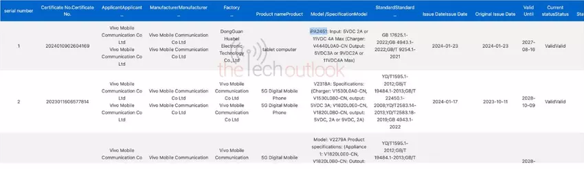 Niestety, w bazie danych 3C nie ma innych specyfikacji iQOO Pad Air, ale według plotek tablet może być przemianowaną wersją vivo Pad Air. Jeśli informacje się potwierdzą, urządzenie otrzyma również 11,5-calowy wyświetlacz z częstotliwością odświeżania 144 Hz, układ Snapdragon 870 i baterię o pojemności 8500 mAh.
