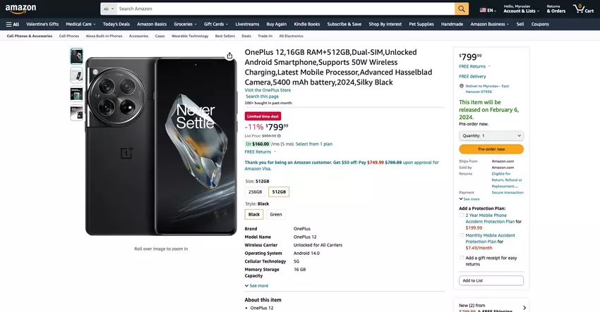 OnePlus 12 z 512 GB pamięci masowej jest dostępny w przedsprzedaży na Amazon z rabatem w wysokości 100 USD