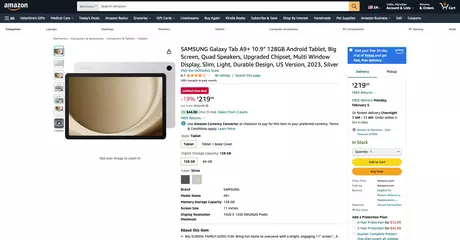Mowa o modelu Galaxy Tab A9+ z pamięcią 128 GB. Gadżet kosztuje $209.00 $269.99, -23%. Jest dostępny w dwóch kolorach: Graphite i Silver.