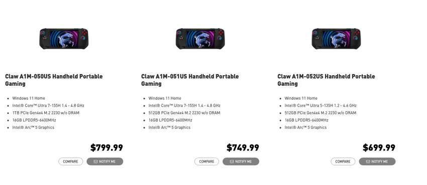 Od 699 dolarów: MSI ujawniło cenę konsoli do gier Claw A1M
