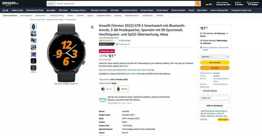 Amazfit GTR 2 na Amazon: smartwatch z funkcją dzwonienia, czujnikiem SpO2 i do 14 dni autonomii ze zniżką 36,3 €