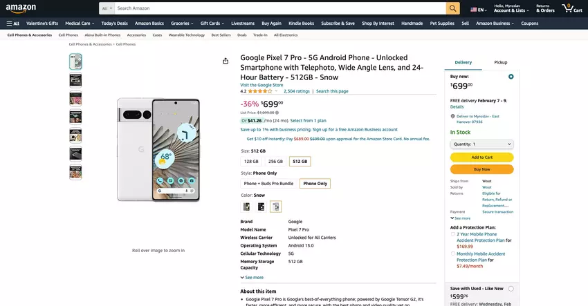 Google Pixel 7 Pro z 512 GB pamięci masowej można kupić na Amazon z rabatem w wysokości 400 USD