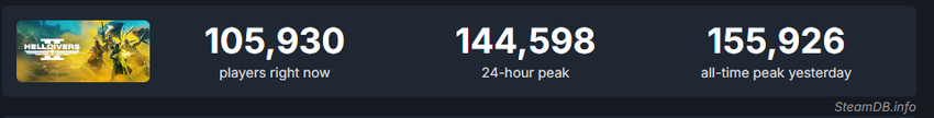 Nowy kamień milowy został ustanowiony: jednoczesny zasięg online Helldivers 2 na Steam wynosi prawie 156 tysięcy.