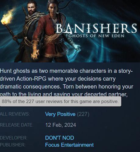 Banishers: Ghosts of New Eden zbiera "bardzo pozytywne" recenzje na Steamie - w chwili pisania materiału gra ma 227 recenzji i 88% z nich jest pozytywnych.