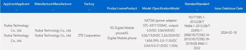 Smartfon o numerze modelu NX724J przeszedł certyfikację w chińskiej agencji 3C. Oznacza to, że premiera nowości odbędzie się w najbliższej przyszłości.