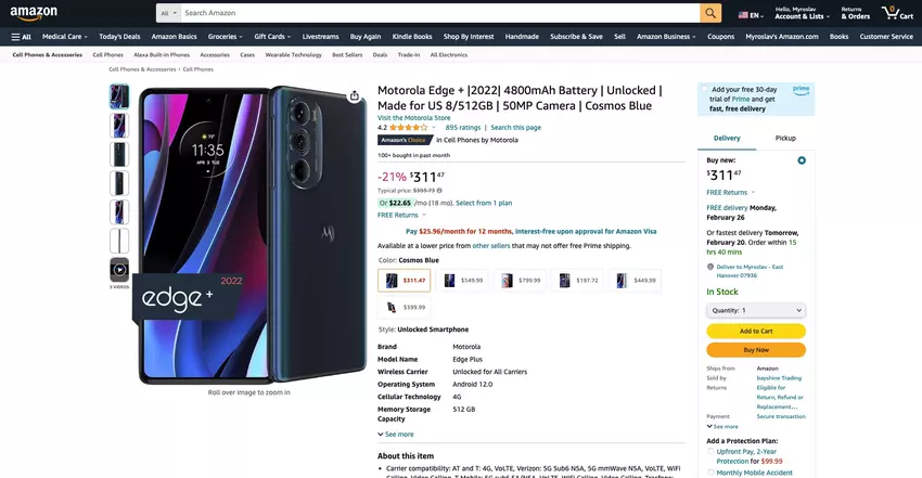 Mowa o modelu Motorola Edge+ (2022) w wersji 8/512 GB za check price on amazon. Smartfon dostępny jest w jednym kolorze - Cosmos Blue.