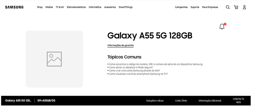 Na portugalskiej oficjalnej stronie Samsunga pojawiła się strona z jeszcze nie ogłoszonym smartfonem Samsung Galaxy A55. Dane na stronie niewiele nam mówią, poza numerem modelu SM-A556B i faktem, że nabywcy Galaxy A55 w Europie, a przynajmniej w niektórych krajach europejskich, będą mogli wybierać między 128 GB a 256 GB pamięci.