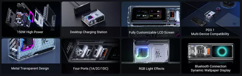 Nowość posiada Bluetooth, dzięki któremu można podłączyć ładowarkę do smartfona i regulować podświetlenie za pomocą aplikacji Goper. Urządzenie obsługuje różne protokoły ochrony i maksymalną moc wyjściową 150W. Urządzenie jest dostarczane z kablami USB-C do USB-C i DC do DC.