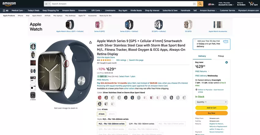 Oferta dnia: Apple Watch Series 9 ze stalową obudową i obsługą eSIM na Amazon za 70 USD taniej