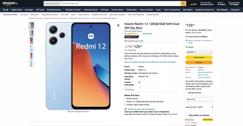 Redmi 12 na Amazon: smartfon z ekranem 90 Hz, układem Helio G88 i aparatem 50 MP za 125 euro (21% taniej)