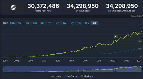 Steam ustanowił kolejny rekord frekwencji: 2 marca z usługi korzystało 34,3 miliona użytkowników