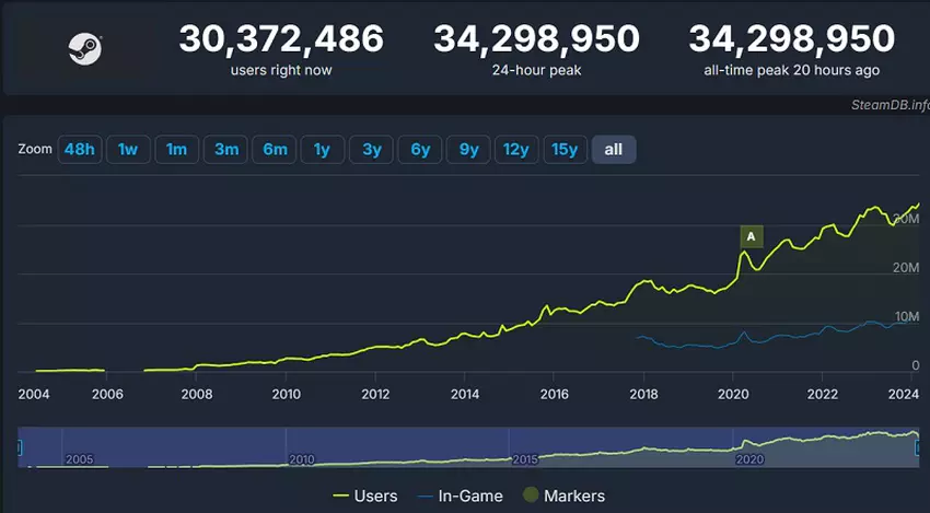 Poprzedni rekord frekwencji odnotowano w serwisie Steam 7 stycznia, kiedy to do usługi weszło 33 675 229 osób.
