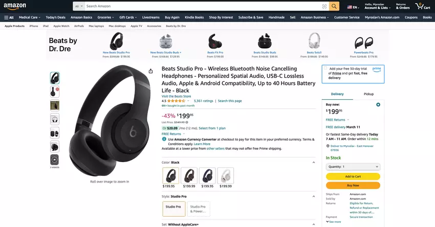 Beats Studio Pro na Amazon: bezprzewodowe słuchawki z ANC, Spatial Audio i do 40 godzin pracy na baterii za 150 USD zniżki