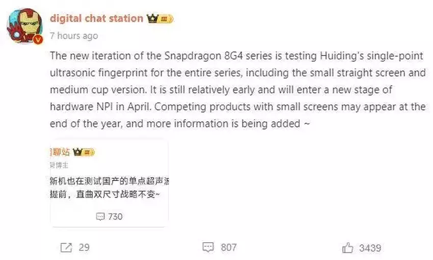 Po oficjalnym wprowadzeniu na rynek Xiaomi 14 Ultra w zeszłym miesiącu, chińska marka rozpoczęła prace nad nową flagową serią Xiaomi 15. Smartfony z tej serii podobno testują unikalną ultradźwiękową funkcję odcisków palców. Pisze o tym popularny chiński bloger technologiczny @DigitalChatStation. Według niego seria Xiaomi 15 testuje funkcję jednopunktowego ultradźwiękowego odcisku palca "Huiding". Proces ten wejdzie w fazę NPI (New Product Introduction) nowego sprzętu w kwietniu. Termin "Huiding" może oznaczać, że jest to rozwiązanie chińskiej firmy Shenzhen Huiding Technology Co, Ltd..