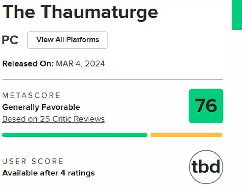 W rezultacie The Thaumaturge otrzymał 76 punktów na Metacritic bez żadnych negatywnych recenzji.