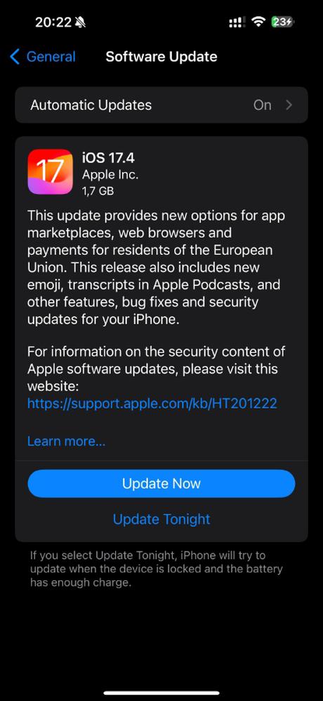 Ponadto Apple zezwoliło na publikowanie w App Store usług strumieniowania gier (Xbox Cloud Gaming, Nvidia GeForce NOW itp.). W iOS 17.4 pojawiły się również nowe emoji, transkrypcje podcastów, lekko zaktualizowana przeglądarka Safari, rozszerzone ustawienia dla Stolen Device Protectio i wiele więcej. Deweloperzy naprawili również wiele błędów w systemie.