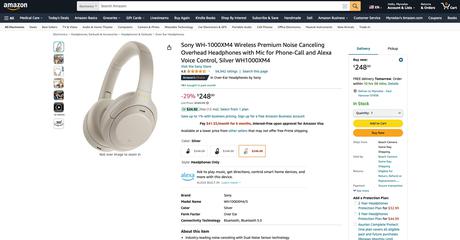 Redakcja gg znalazła dla Ciebie kolejną świetną ofertę na Amazon - słuchawki bezprzewodowe Sony WH-1000XM4 za $198.00 $348.00, -43%.