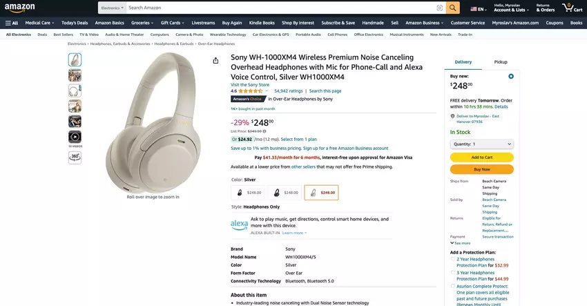 Sony WH-1000XM4 z ANC i do 30 godzin pracy na baterii jest dostępny na Amazon za 248 USD (100 USD zniżki).
