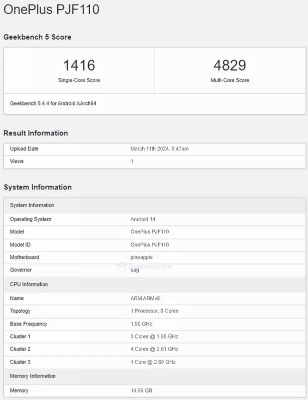 Niestety, w bazie danych Geekbench nie ma innych specyfikacji urządzenia, ale jeśli wierzyć plotkom, smartfon będzie również wyposażony w wyświetlacz OLED 120 Hz i baterię 5500 mAh z ładowaniem 100 W.