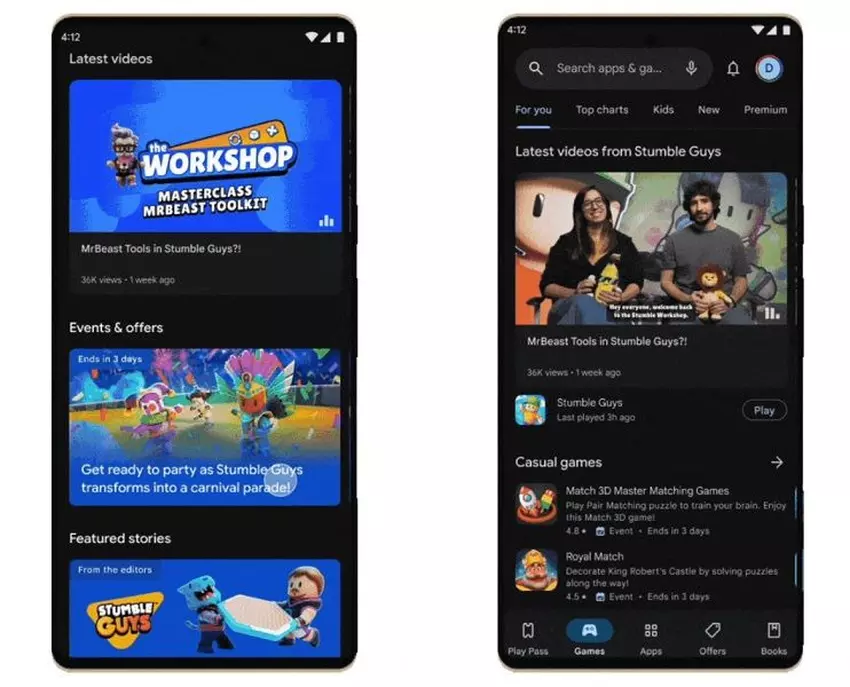 Zgodnie z postem na oficjalnym blogu Google, filmy z YouTube będą wyświetlane bezpośrednio na stronach Sklepu Play i pomogą użytkownikom lepiej poznać gry przed ich pobraniem. Ponadto, Google Play Games otrzymuje więcej natywnego wsparcia dla gier komputerowych, co poszerza granice gier dla użytkowników.