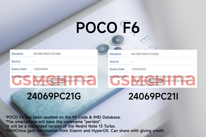 Mowa o modelu POCO F6 o nazwie kodowej Peridot. Informacja o nowości została opublikowana przez naszych kolegów z GSMChina.
