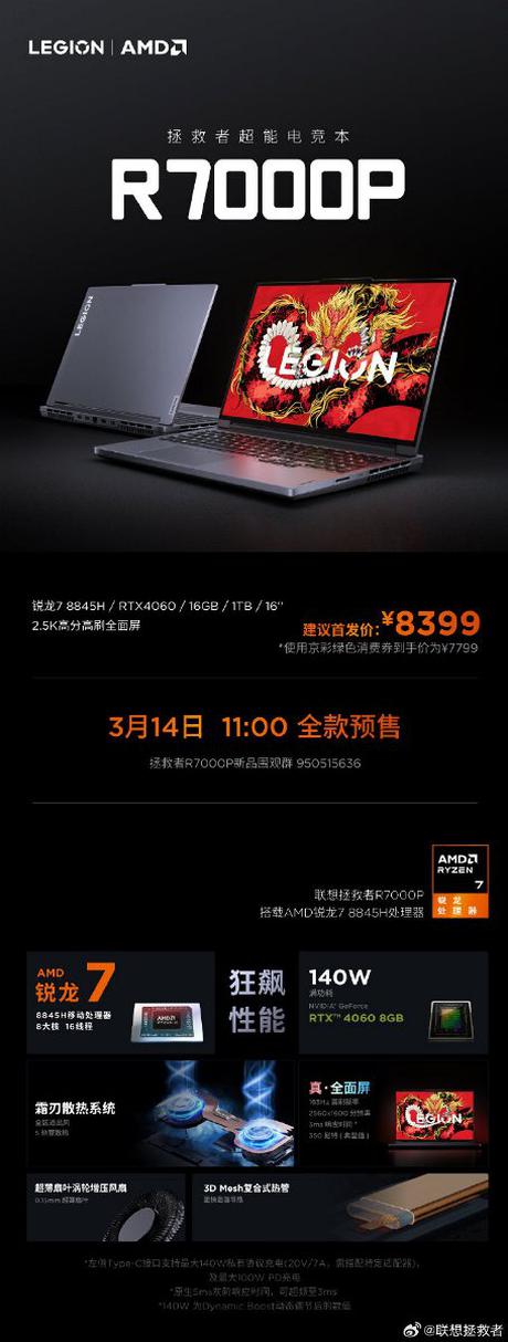 Lenovo wprowadziło na chiński rynek nowy laptop do gier Legion R7000P 2024.