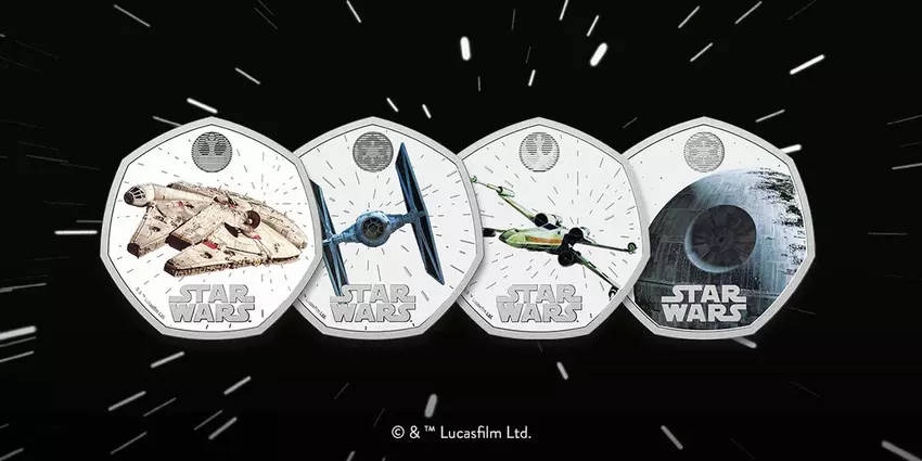 Mennica Brytyjska wypuściła kolekcję numizmatyczną przedstawiającą trzy kultowe statki kosmiczne i Gwiazdę Śmierci z Gwiezdnych Wojen.