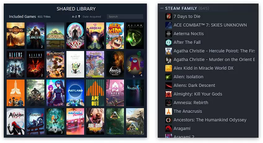 - Możliwość łączenia się w grupy rodzinne do 6 osób. Użytkownicy będą mieli wzajemny dostęp do gier, które nadają się do wypożyczenia, ale na razie ich katalog jest ograniczony. Uruchamiając gry z biblioteki rodzinnej, każdy może tworzyć własne zapisy, zdobywać własne osiągnięcia w Steam, mieć dostęp do zadań warsztatowych i nie tylko.