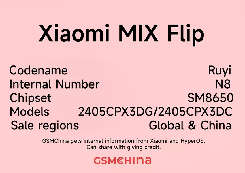 Nowość przechodzi z nazwą kodową Ruyi i numerami modeli 2405CPX3DG/2405CPX3DC. Gadżet otrzyma dwa wyświetlacze: główny i dodatkowy na zewnątrz. Smartfon będzie wyposażony w podwójny aparat Leica. Xiaomi MIX Flip będzie napędzany flagowym procesorem Snapdragon 8 Gen 3.