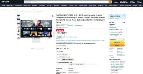 Samsung Smart Monitor M8 z 32-calowym ekranem dostępny na Amazon z rabatem w wysokości 300 USD