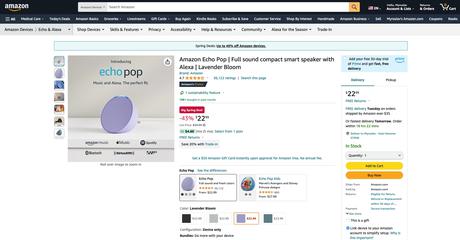 Amazon obniżył cenę inteligentnego głośnika Echo Pop z okazji wyprzedaży Big Spring Deal.