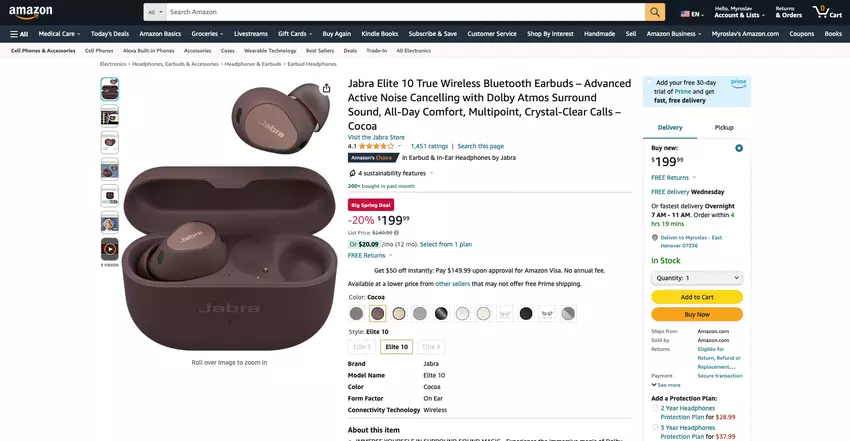Amazon Big Spring Deal: Jabra Elite 10 z ANC i dźwiękiem przestrzennym za 199 USD (50 USD zniżki)