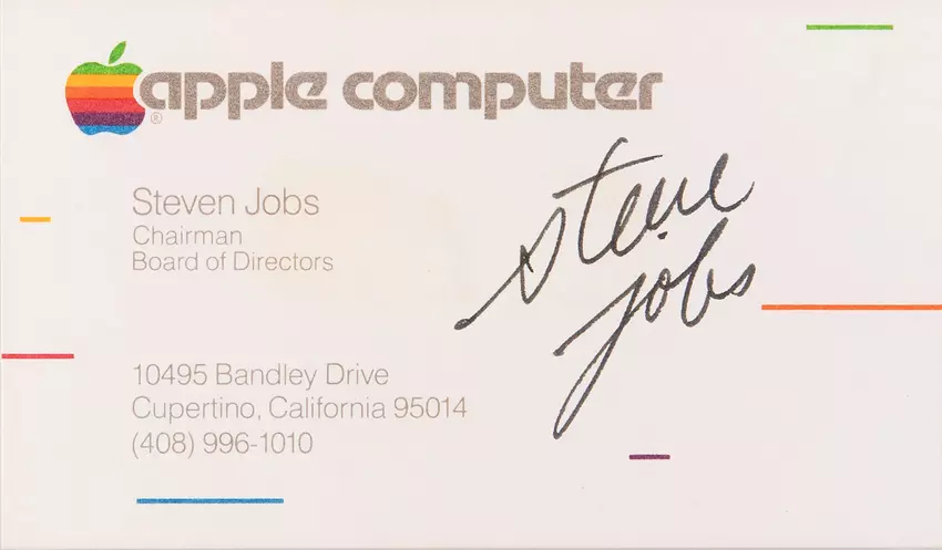 Według RR Auction z siedzibą w Bostonie, rzadka wizytówka Apple Computer podpisana przez Steve'a Jobsa została niedawno sprzedana na aukcji za 181 183 USD. Jest to rekordowa cena za podpisaną wizytówkę.