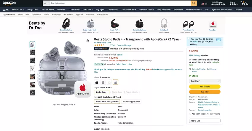 Mowa o Beats Studio Buds+ w kolorze Transparent za $123.95 $198.95, -38%. Wraz ze słuchawkami otrzymujemy również darmową 2-letnią rozszerzoną gwarancję AppleCare+.