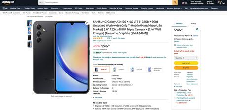 Samsung Galaxy A34 5G na Amazon: Wyświetlacz AMOLED 120 Hz, układ Dimensity 1080 i potrójny aparat 48 MP z 29% rabatem