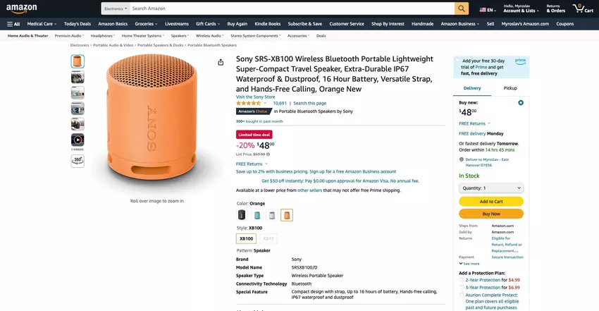Sony SRS-XB100 na Amazon: głośnik bezprzewodowy ze stopniem ochrony IP67 i do 16 godzin autonomii z 20% rabatem