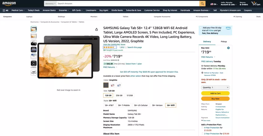 Mowa o Galaxy Tab S8+ z Wi-Fi i 128 GB pamięci masowej. Gadżet jest sprzedawany z rabatem w wysokości 180 USDcheck price on amazon).