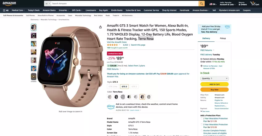 Oferta ograniczona czasowo: Amazfit GTS 3 na Amazon ze zniżką 30 USD
