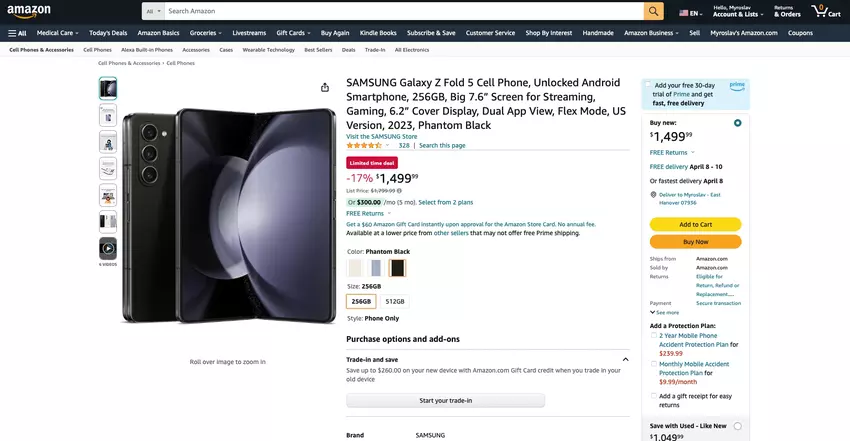 Składany smartfon Samsung Galaxy Fold 5 można kupić na Amazon z rabatem w wysokości 300 USD