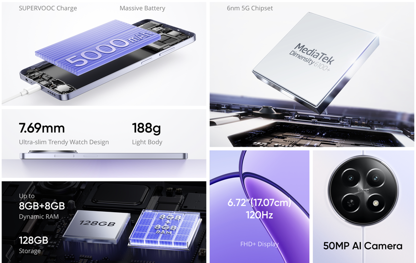 - realme 12x 5G, 4/128 GB - 129 USD