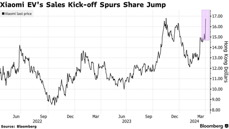 Xiaomi odnotowało gwałtowny wzrost na giełdzie w Hongkongu ze względu na sukces swojego pierwszego samochodu elektrycznego, który przekroczył wszelkie szacunki.