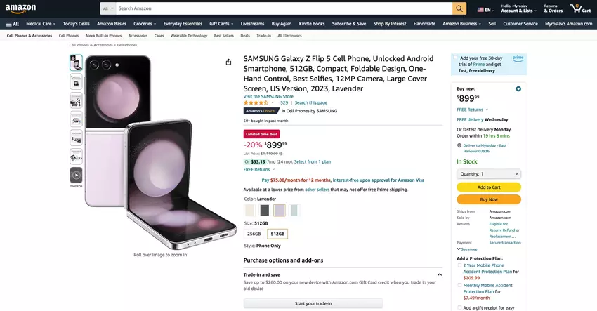 Jeśli od dawna chciałeś kupić składany smartfon Galaxy Flip 5, jest on teraz w sprzedaży na Amazon ze zniżką.